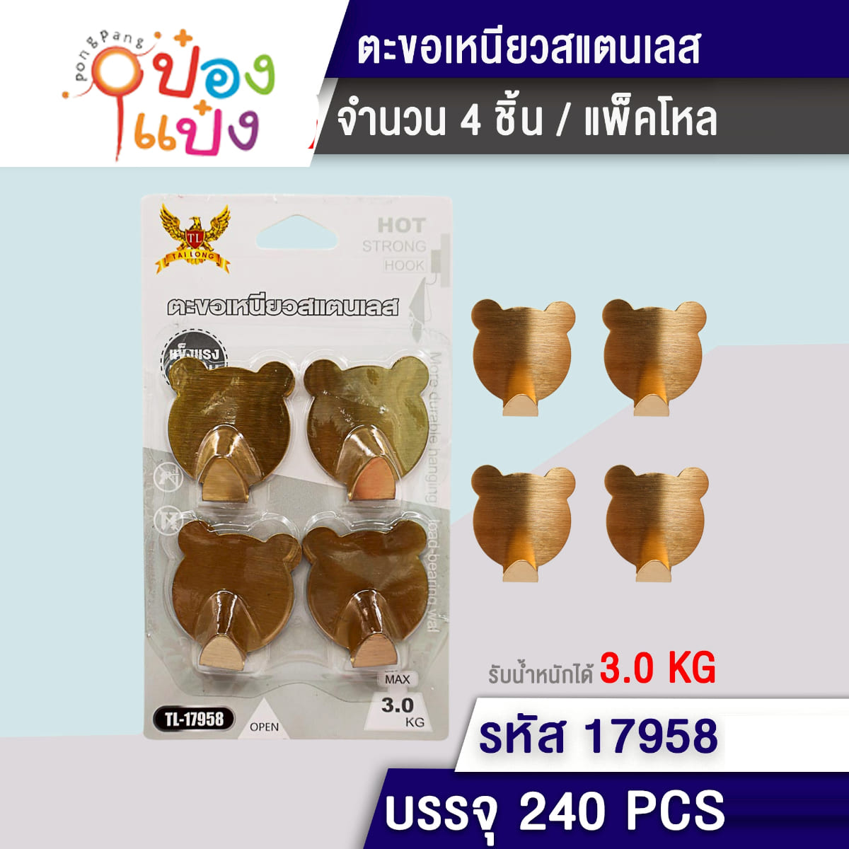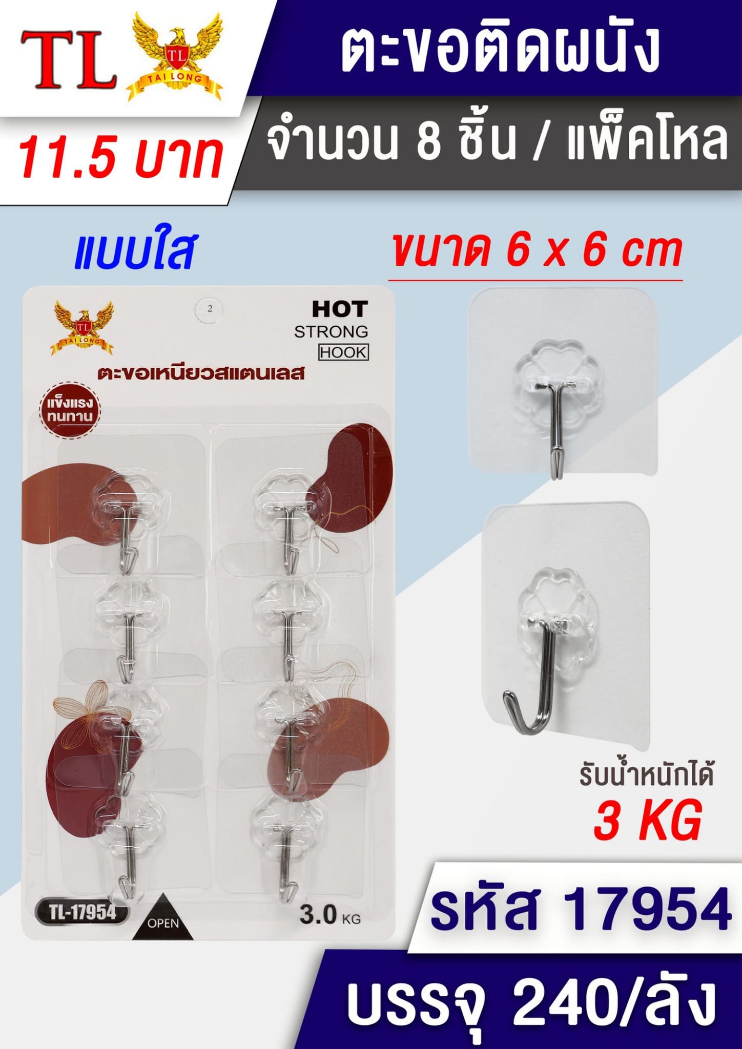 685. (B361-TL5215) ตะขอแขวน สเตนเลส (สี) 6หัว สินค้า 15บาท