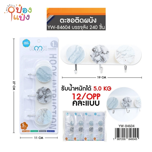 644. (B362-YW84604) ตะขอราว3หัว ลายหินอ่อน คละบบ ขนาด19CM 1*240