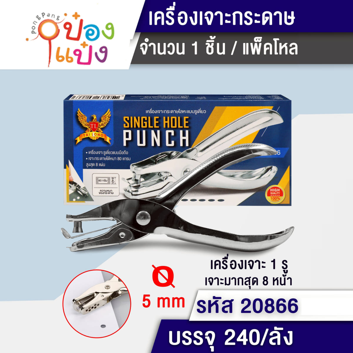 881. (B424-T20866) ที่เจาะรูกระดาษ เหล็กมือบีบ T9679 P8535 S6430 T20868 WYCD1016 WY3012