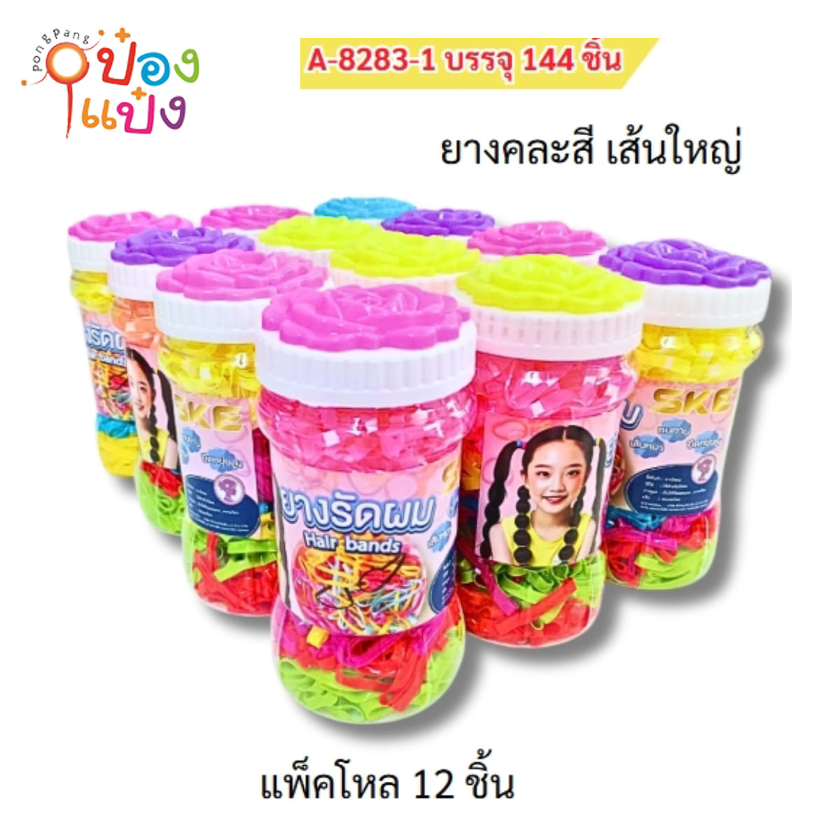 512. (B461-S8283-1) ยางรัดผมเส้นใหญ่สี กระปุกโหลเว้าข้างฝาชบา 1*144