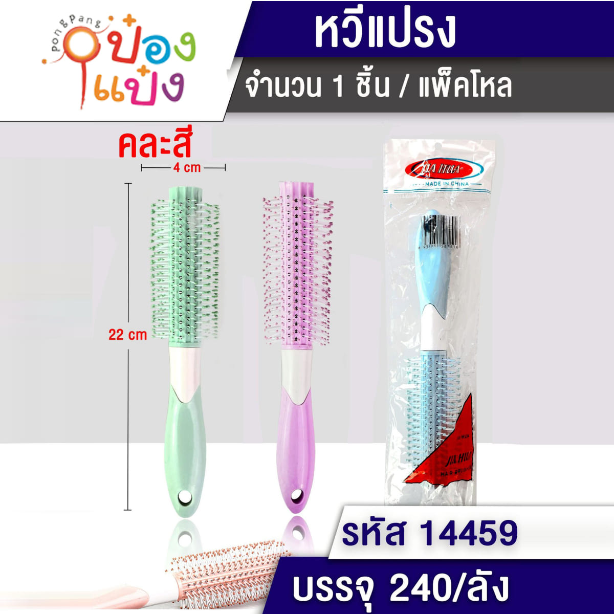 569. (B463-T14459) หวีดัดผม แบบกลม 4x22CM ด้ามจับสองสี 1*240