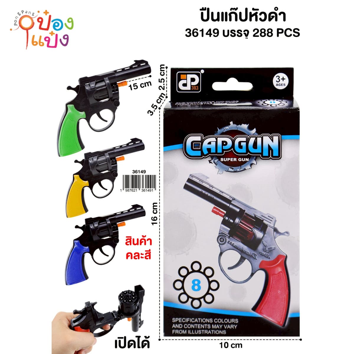 1471. (A206-TS36149) ปืนสั้น ปืนแก๊ปหัวดำ 15CM. คละสี แบบกล่อง 1*288