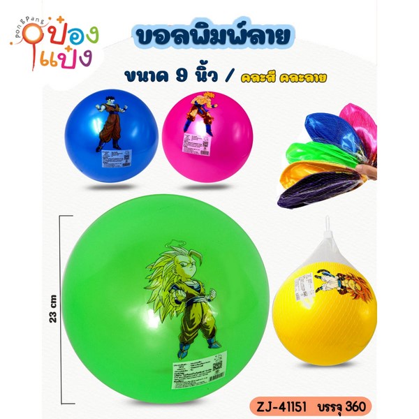 2150. (B429-ZJ41151) ลูกบอลเป่าลม 23CM. ดราก้อนบอลพื้นสี 1*360
