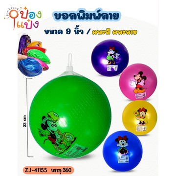 2157. (B429-ZJ40679) ลูกบอลเป่าลม 9นิ้ว ลายการ์ตูน ถุงตาข่าย คละแบบ 1*360