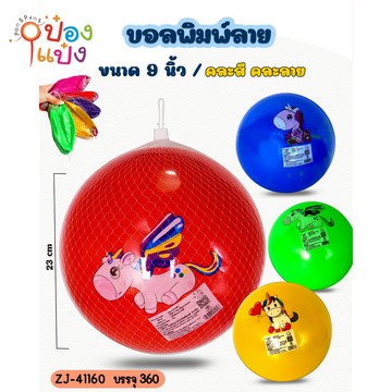 2160. (B429-ZJ40672) ลูกบอลเป่าลม 9นิ้ว ลายการ์ตูน ถุงตาข่าย คละแบบ 1*360