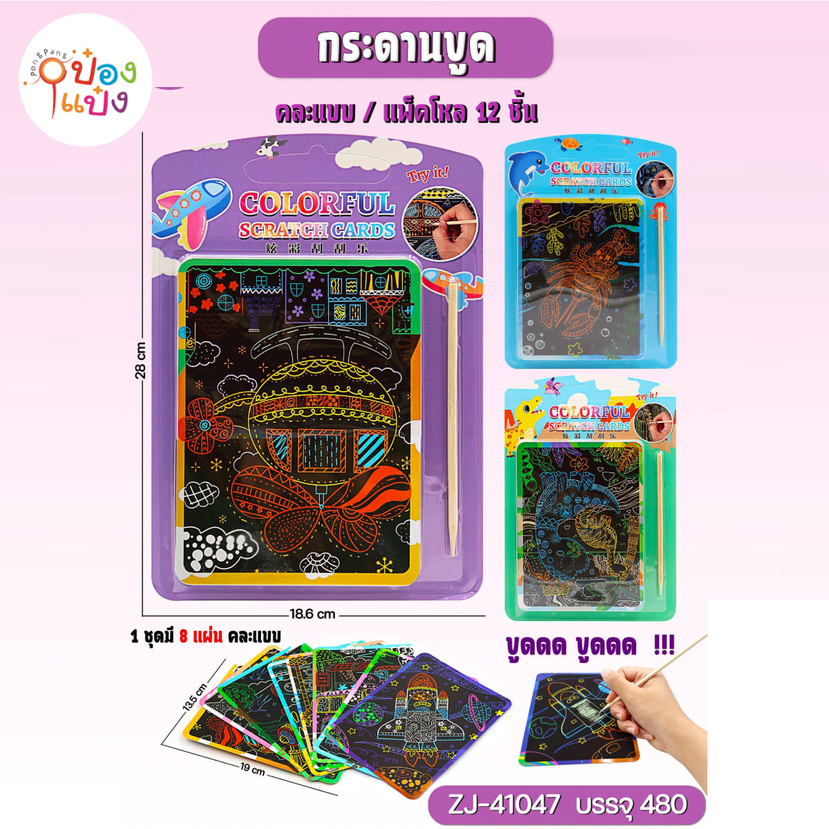 383. (A244-ZJ41048) กระดาษขูดสีรุ้ง 21.5x13.5CM. คละการตูน 1*480 ZJ41050