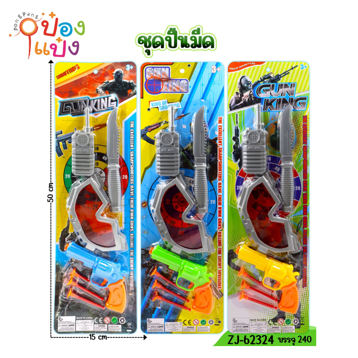 787. (A208-TS32124) ชุดปืนยิงหนังสติ๊ก แผง 15.5x30CM.คละสี 1*288 ZJ62202 ZJ62203