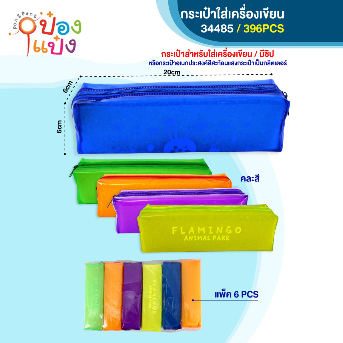 251. (B411-TS34485) กระเป๋าใส่ดินสอ 6x6x20CM สะท้อนแสง สีพื้นพิมพ์ข้อความ 1*396
