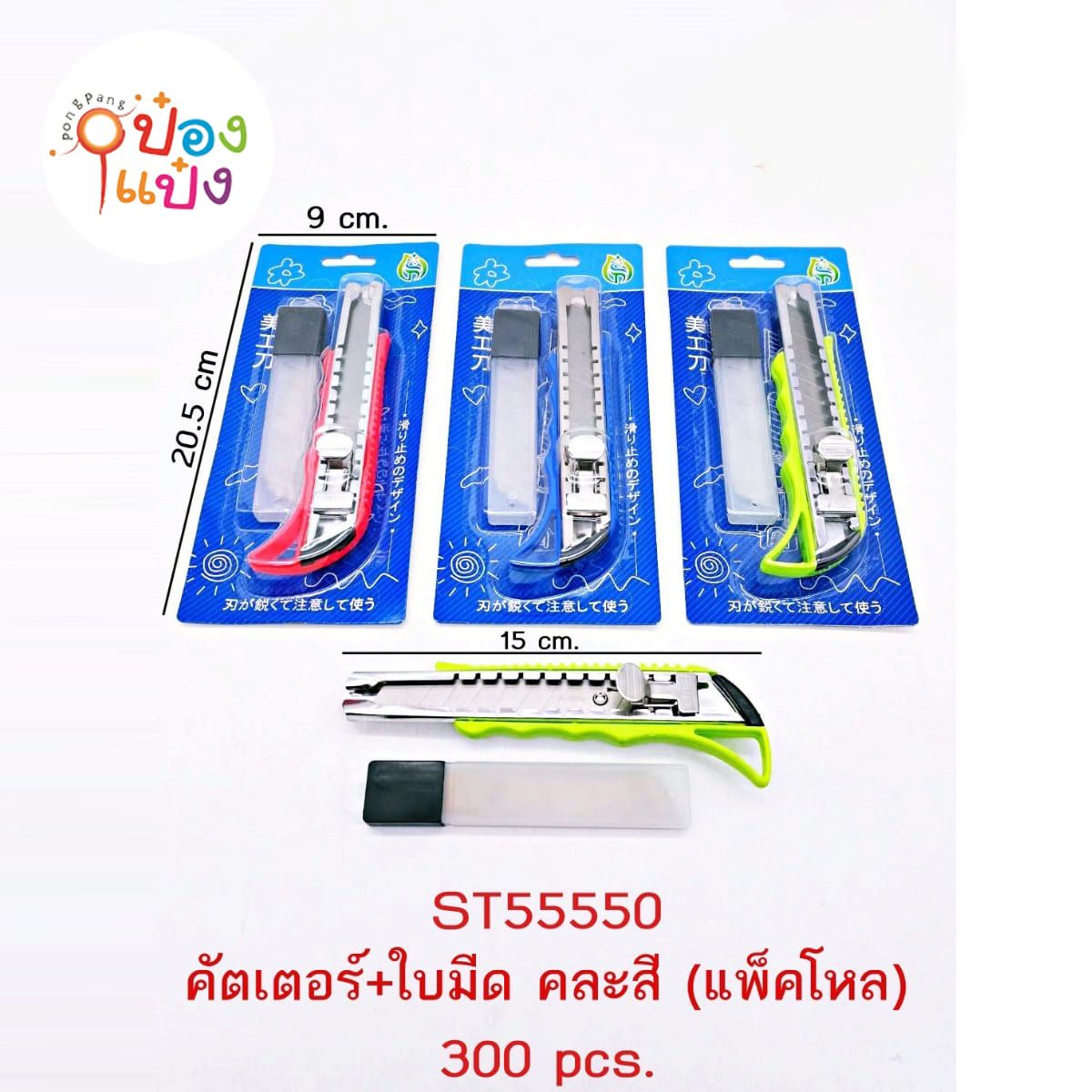 363. (B327-KT615) คัตเตอร์พลาสติกใหญ่2+เล็ก2+ใบมีดใหญ่-เล็ก 1x6 แผงใส T9908 P8893