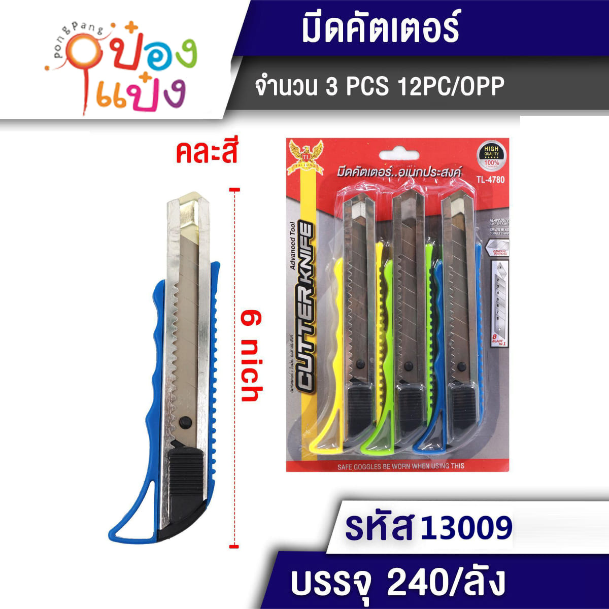 345. (B333-TL13008) คัตเตอร์ 1x3 คละสี 13x2.5CM