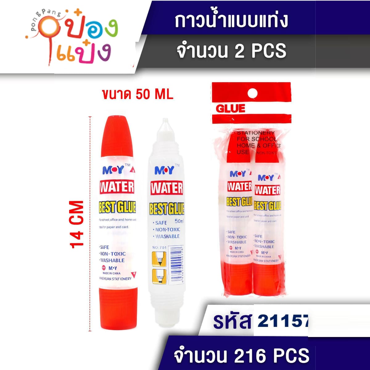 311. (B412-T21157) กาวน้ำแบบแท่ง สองหัว 1X2 50ML 14CM 1*216