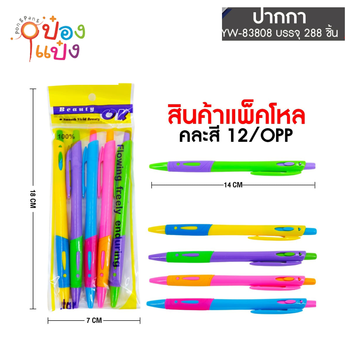 544. (B416-YW83809) ปากกาลูกลื่น แบบกด สีน้ำเงิน 1x5 ปลอกคละสี 1*288 TLA0512