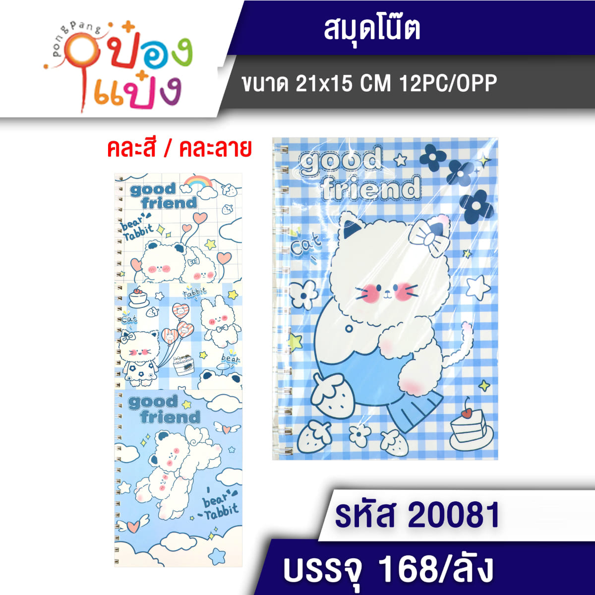 708. (B404-PL5667) สมุดริมลวด สมุดโน๊ต ปกหมีคละลาย 185x260