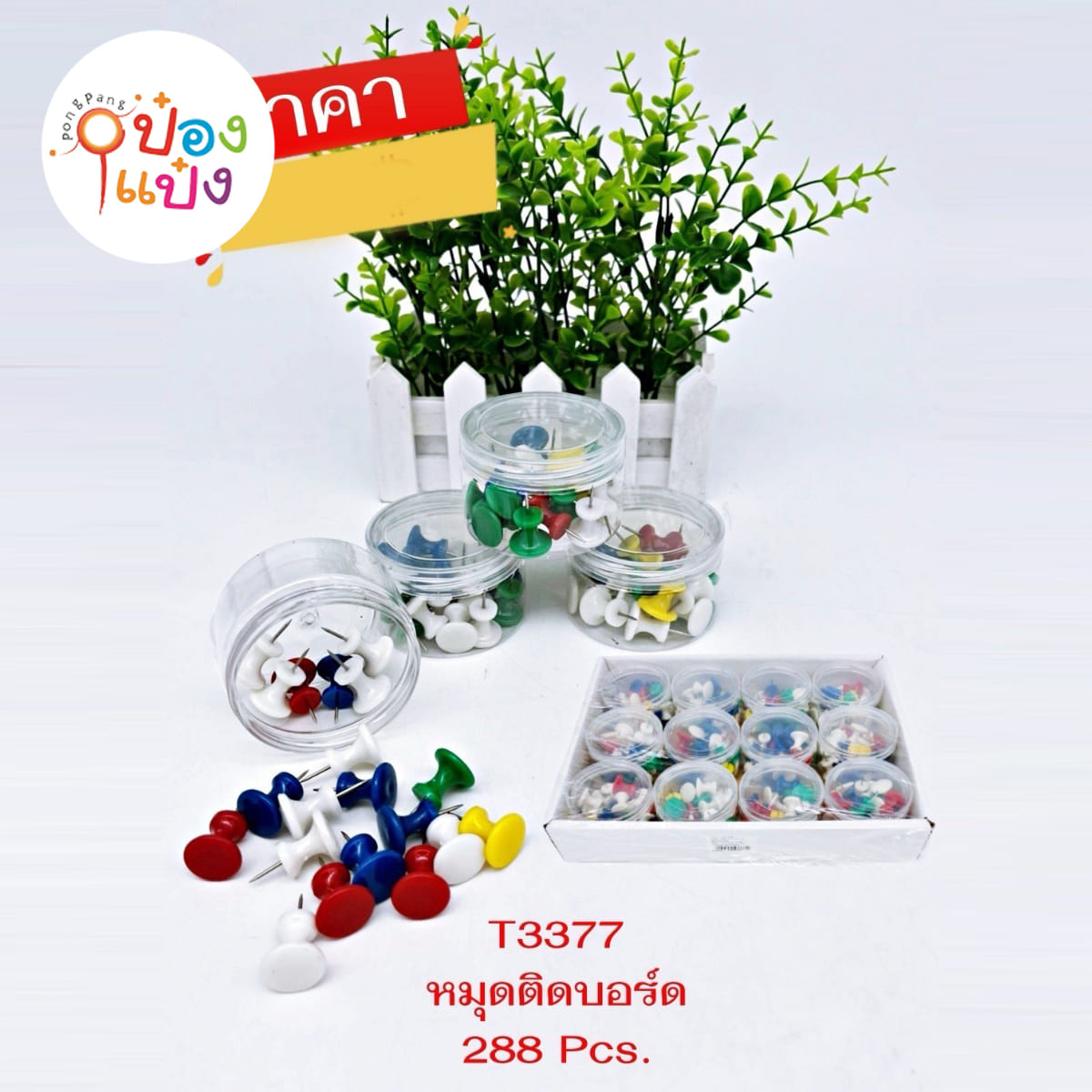 767. (B415-ST3377) หมุดกระปุกพลาสติก ตัวใหญ่ คละสีทึบ 1*288
