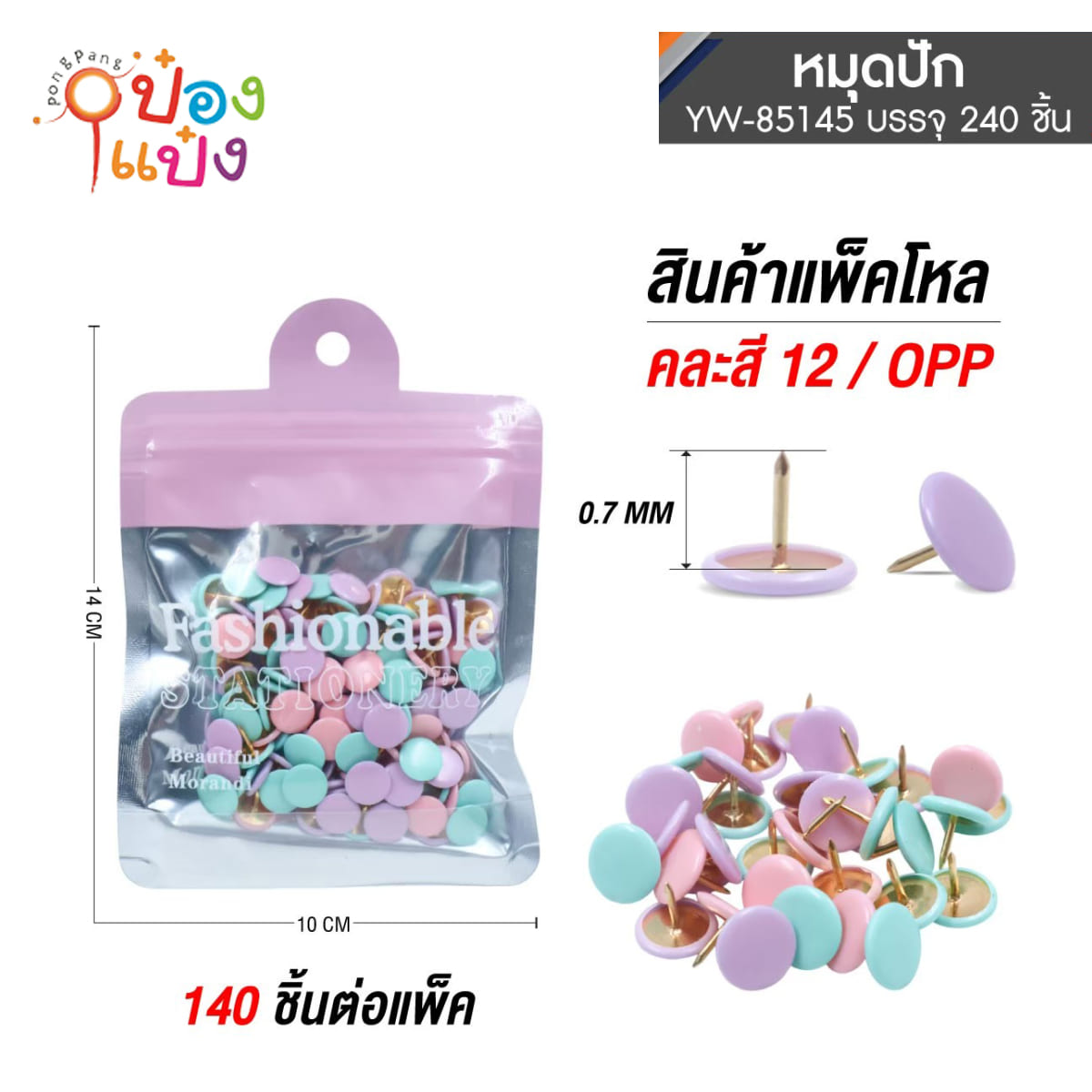 770. (B415-YW85145) หมุดสีพาสเทล แพ็ก140ชิ้น 0.7MM แบบซอง 1*240