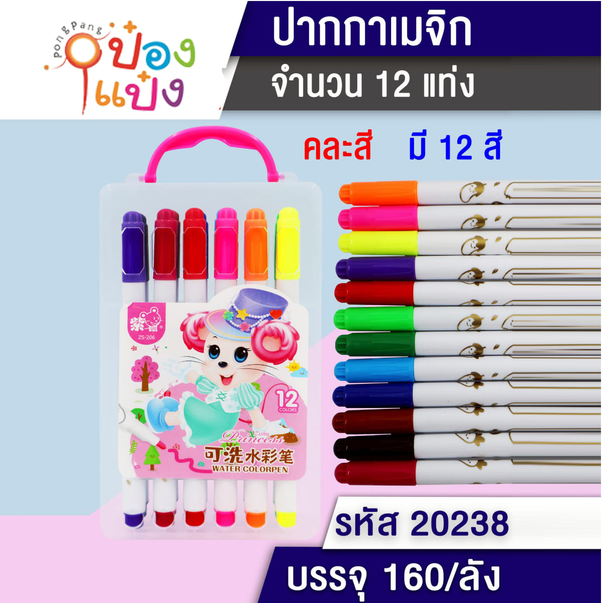 755. (B424-TL9548) สีเมจิก 12 สี แพ็คกล่อง คละแบบ พลาสติกหูหิ้ว P7750
